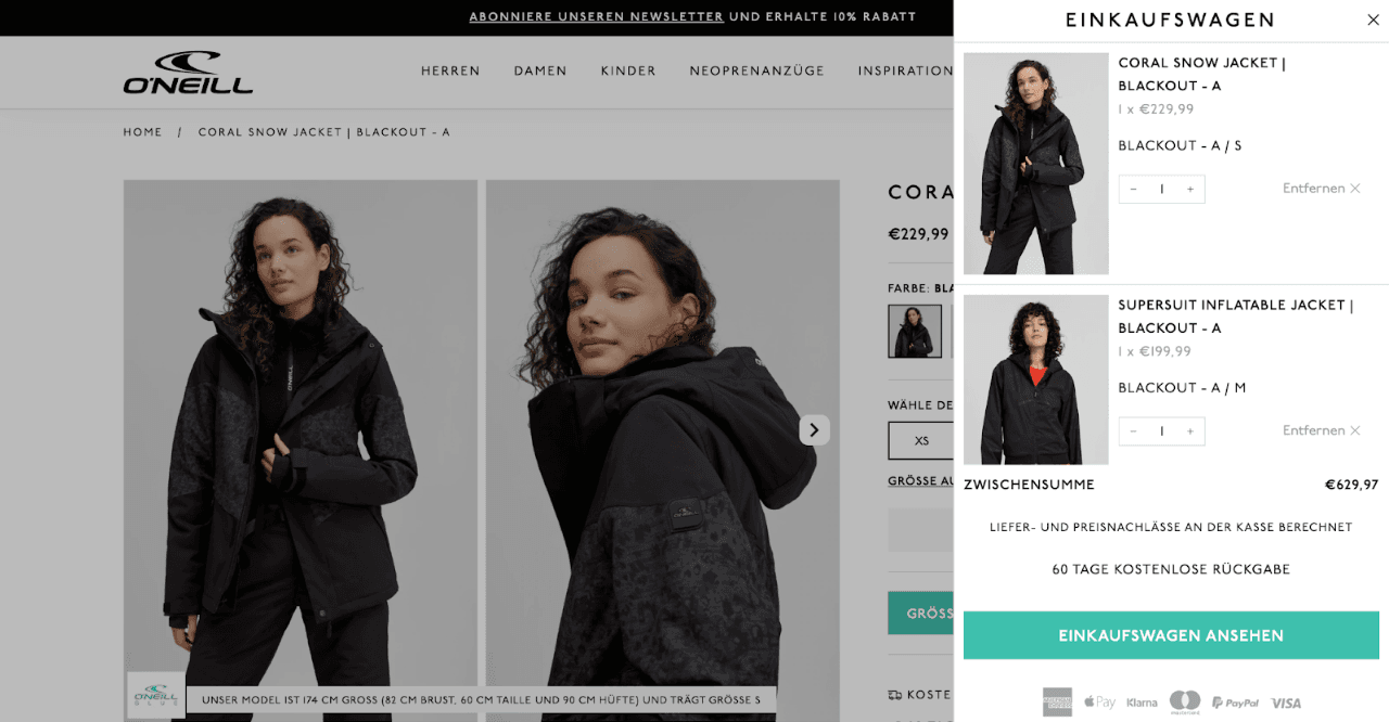 The cart overlay is perceived as the actual cart. Removing the additional step from the cart overlay to the cart page improves the user experience and results in a higher conversion rate.